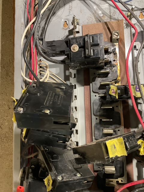 In the picture above, you can see that charring started with the main breaker, then moved down the buss bar and ultimately affected multiple breakers. This was a problem we discovered in one of our customer’s homes, and is a definite fire hazard.